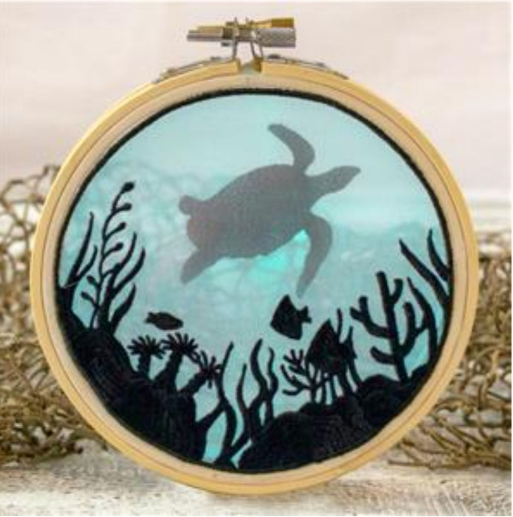 Embroidered turtle holiday ornament with LED lights