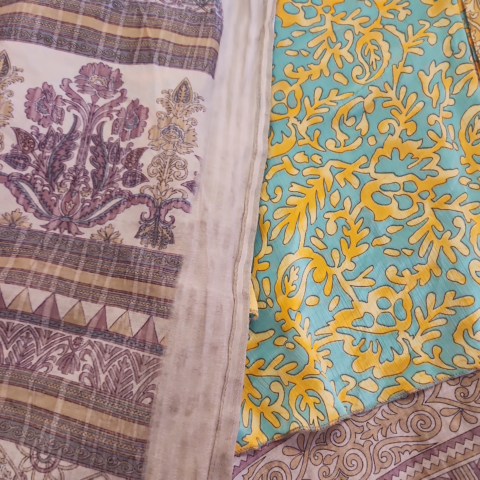 Multi color yellow/orange, sea foam green, rose pink, beige and light brown