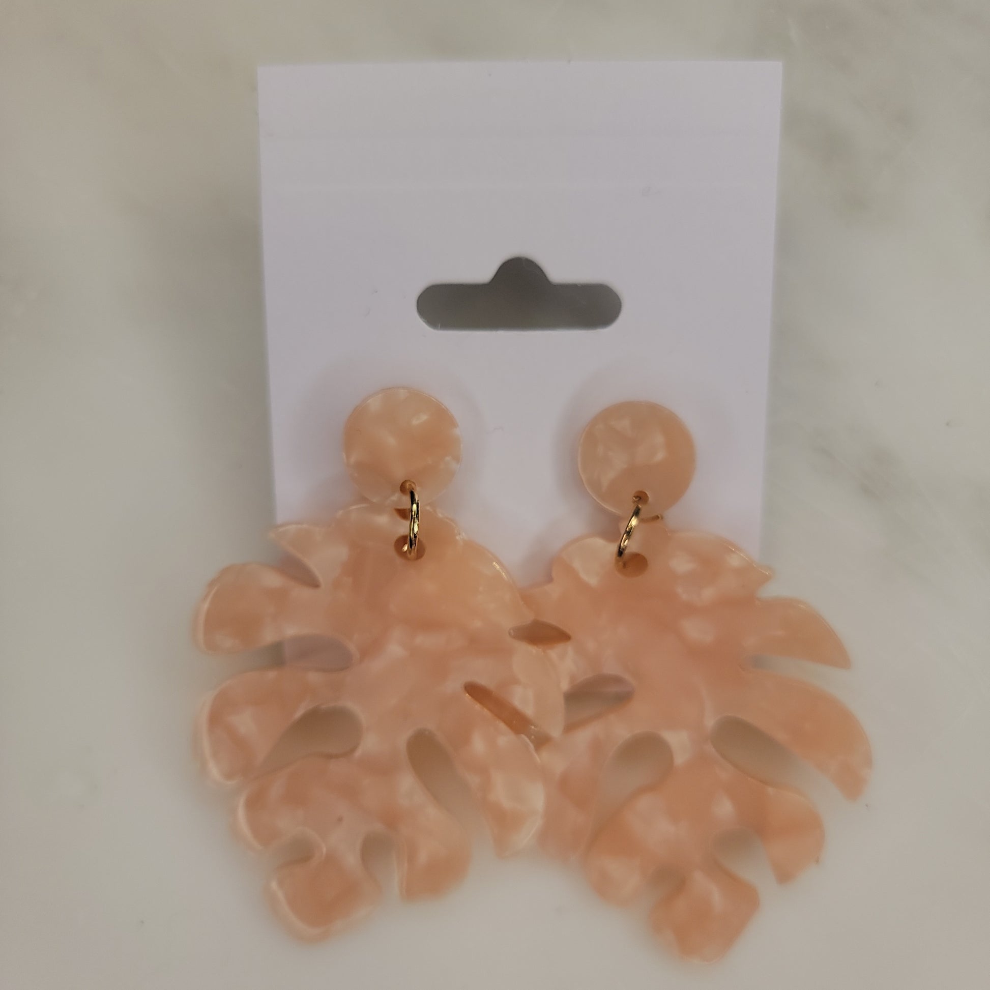 Resin Peach and pearl leaf earings